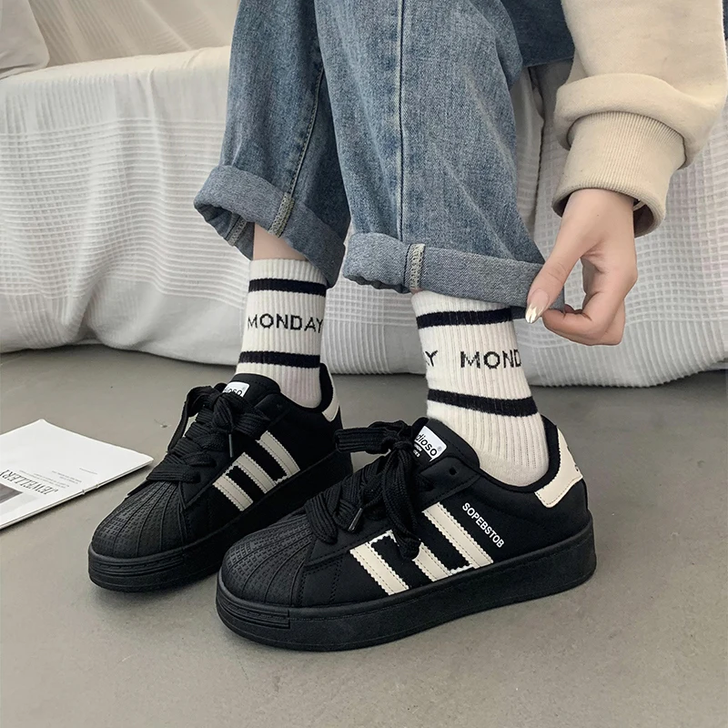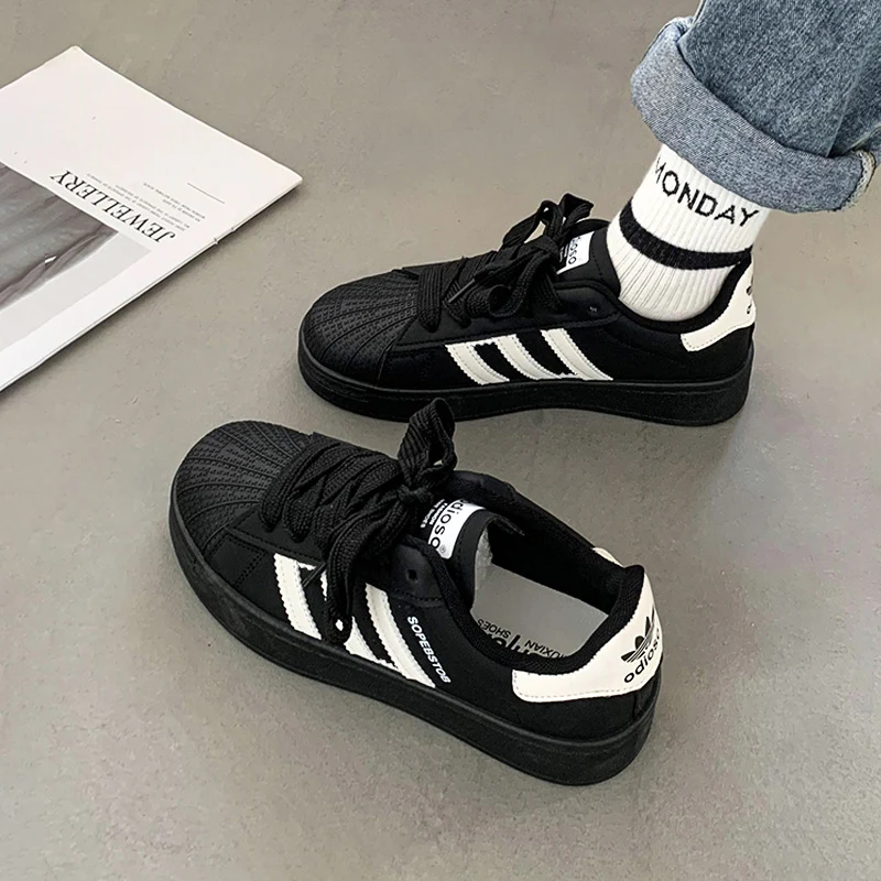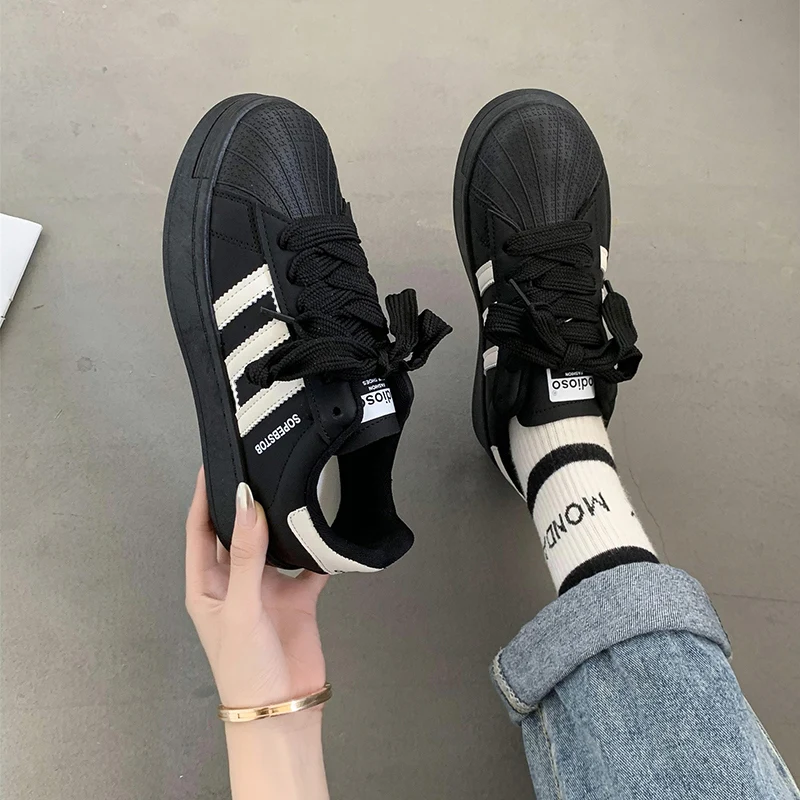 O tênis casual feminino preto com listras brancas combina elegante e conforto para o seu dia a dia. Com design moderno e minimalista, ele é perfeito para passeios, trabalho ou encontros com amigas. Leve, versátil e estiloso, garante passos seguros e cheios de personalidade em qualquer ocasião.